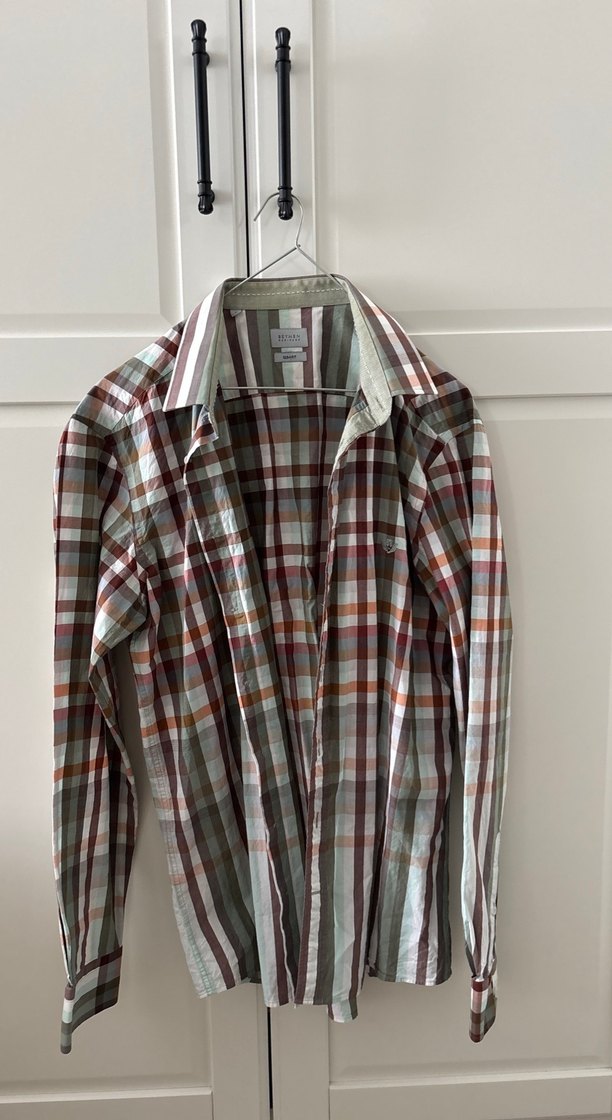 Düğmeli, çok renkli çizgili erkek gömleği, uzun kollu ve klasik yaka tasarıma sahiptir. Rahat kesimli ve yumuşak dokulu kumaştan üretilmiştir. Hiçbir deformesi yoktur