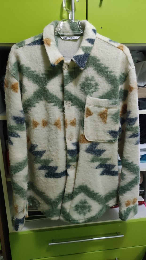Düğmeli ön cep detaylı, uzun kollu ve yakalı erkek yün gömlek ceket. Gevşek kesim ve çok renkli batik desenle rahat ve bohem tarz sunar. son fiyattır