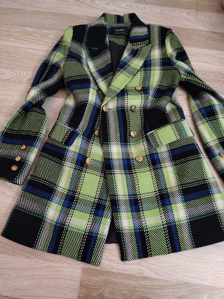 Uzun kesim, düğmeli ve ekose desenli kadın blazer. Sentetik kumaştan, regular fit ve uzun kollu, günlük ve iş tarzı için uygundur.
