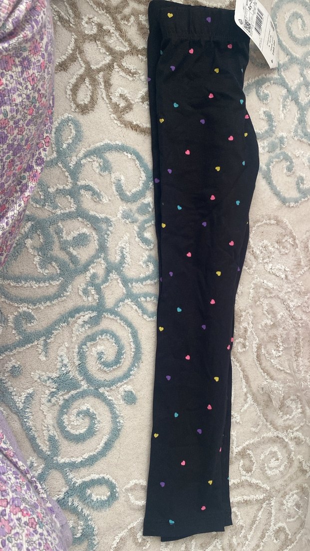Düğmeli, çok renkli kalp desenli, yumuşak sentetik kumaştan yapılmış kız taytı.