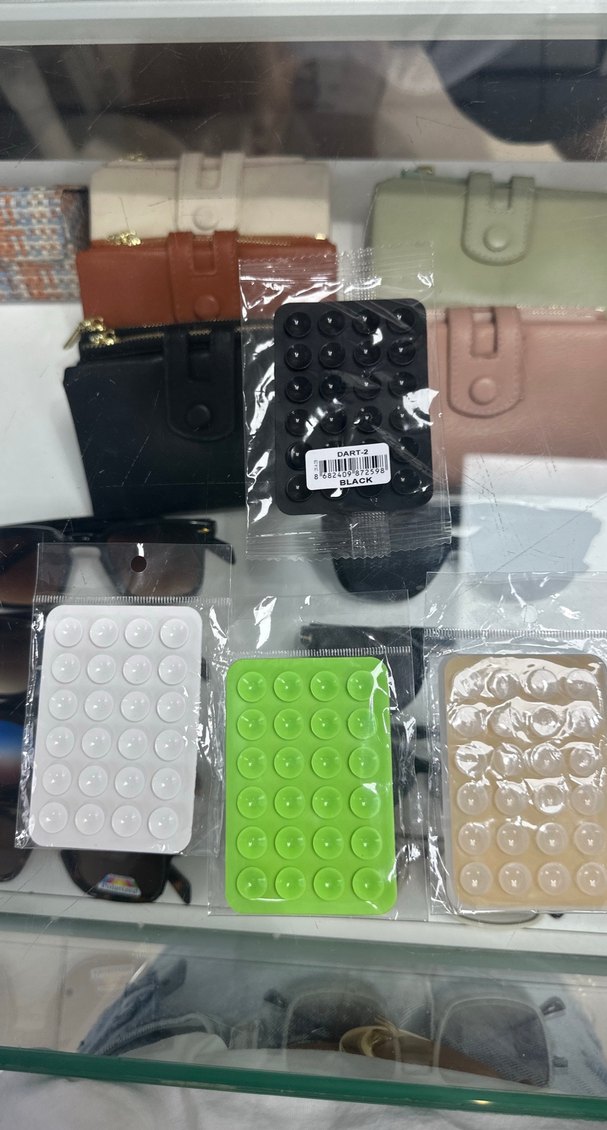 Çok renkli koyu tonlarda düğmeli vantuzlarla donatılmış, kontrakültür tarzında telefon tutucudur.