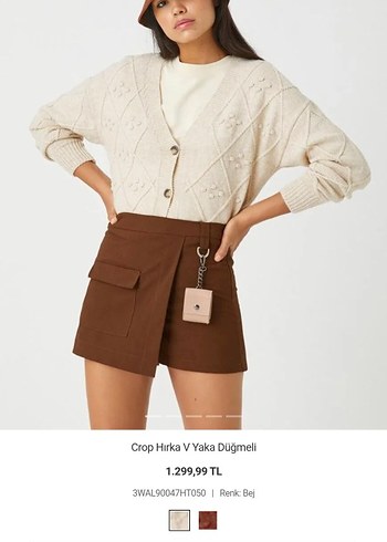Düğmeli Crop Hırka V Yaka Düğmeli