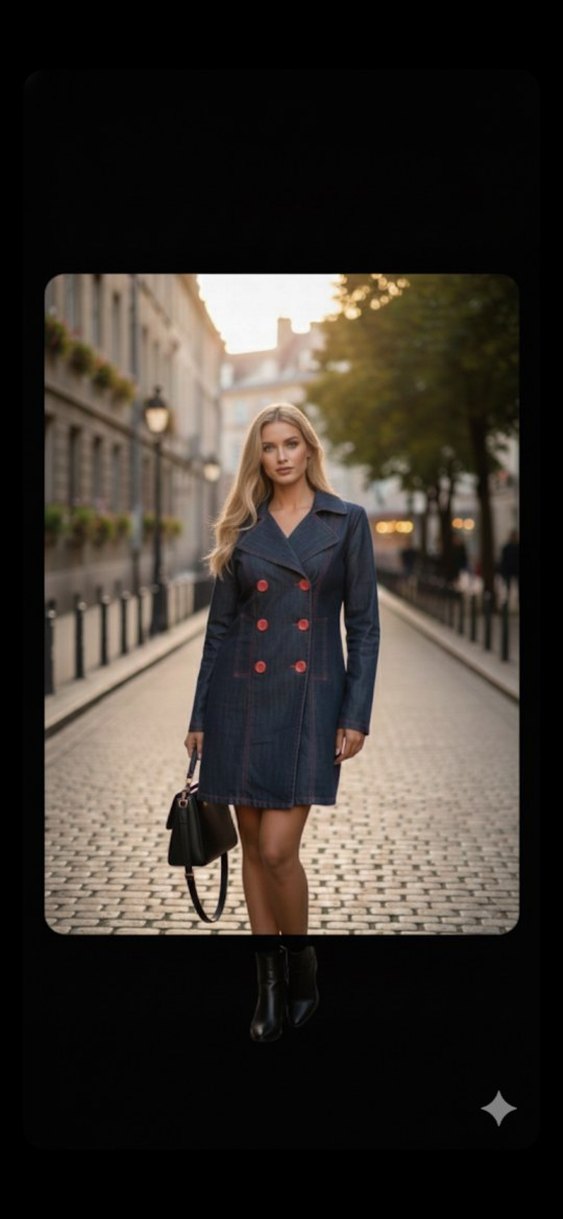 Gri denim kumaştan, düğmeli ve notched yaka detaylı midi uzunlukta trençkot. Uzun kollu ve regular fit kesime sahip, günlük sokak stili için uygun. Boy 71 iki koltuk arası 42 cm likrali değildir kemeri mevcuttur VİTRİN görseli temsilidir