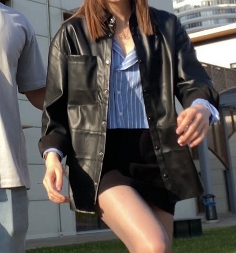ince, oversize, suni deri gömlek ceket