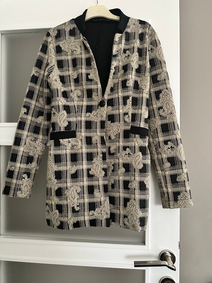 Düğmeli Desenli Kadın Blazer Ceket