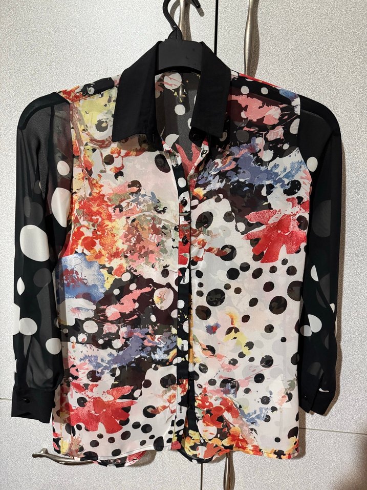 Kadınlar için düğmeli, yakalı, uzun kollu ve sentetik kumaştan yapılmış, çok renkli desenli mixray marka