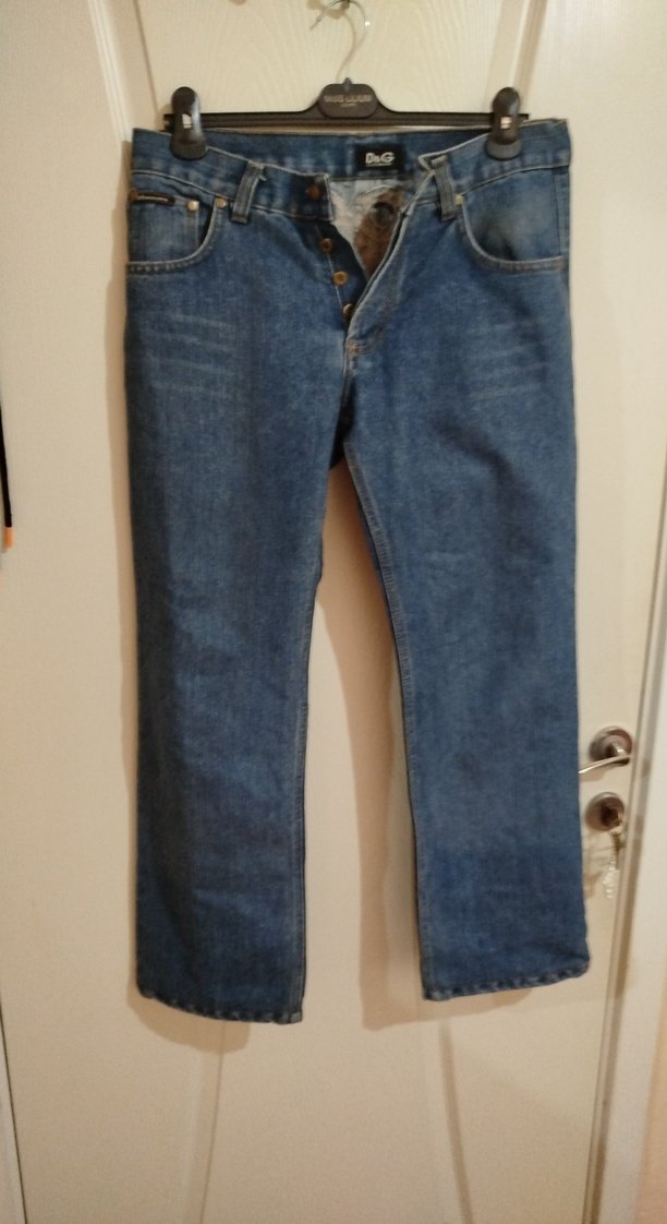 Düğmeli ön kısmı ve normal midi boyu ile bol kesim mavi kadın kot pantolon, günlük rahat kullanım için uygundur. Sokak stili için ideal.