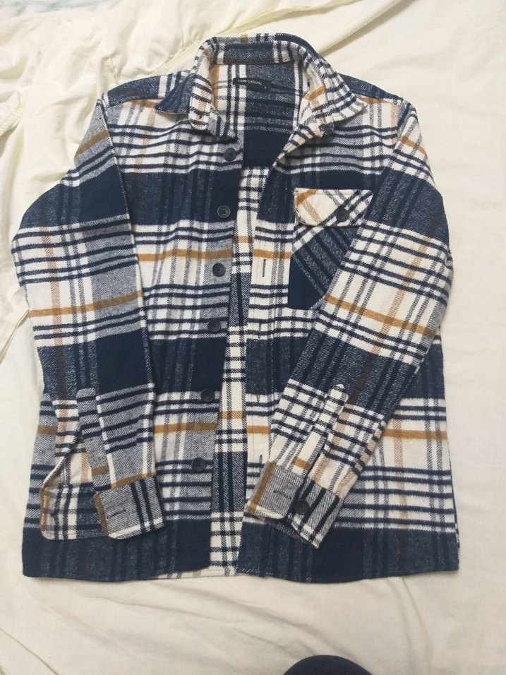 erkek gömlek, uzun kollu ve kesimli yakaya sahiptir. Rahat kesim, normal midi boy ve yumuşak sıcak kumaştan yapılmıştır. Düğmeli ön ve göğüs cebinde detaylar bulunur. Gri ve çok renkli ekose deseniyle günlük kullanıma uygundur.