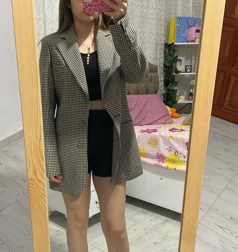 Gri ekose desenli kadın blazer, düğmeli ve uzun kolludur. Normal uzunlukta ve regular fit kesimlidir. Günlük kullanım için uygundur. Zara markadır