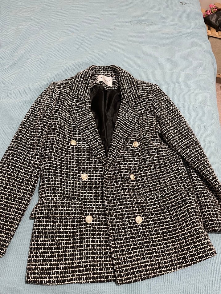 Düğmeli Ekose Desenli Kadın Blazer Ceket
