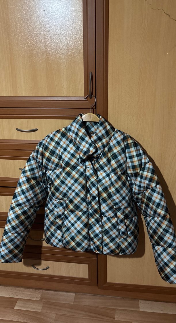 Kadın ceket, düğmeli, kesik yaka ve ekose desenlidir. Normal kesim, uzun kollu ve sentetik kumaştan yapılmıştır. Koyu kahverengi tonlarında, midi boyda, günlük kullanıma uygun.