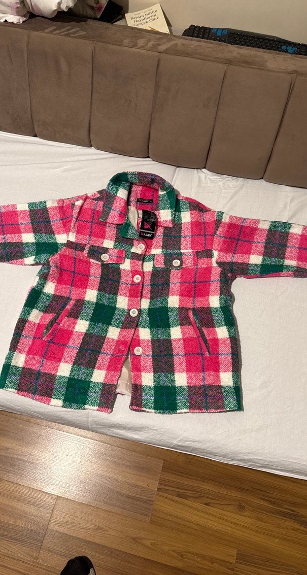 Kadınlar için düğmeli, uzun kollu ve kesik yaka detaylı gömlek. Yumuşak ve sıcak kumaştan üretilmiş, bol kesim ve renkli ekose desenlidir. Günlük kullanım için uygundur.