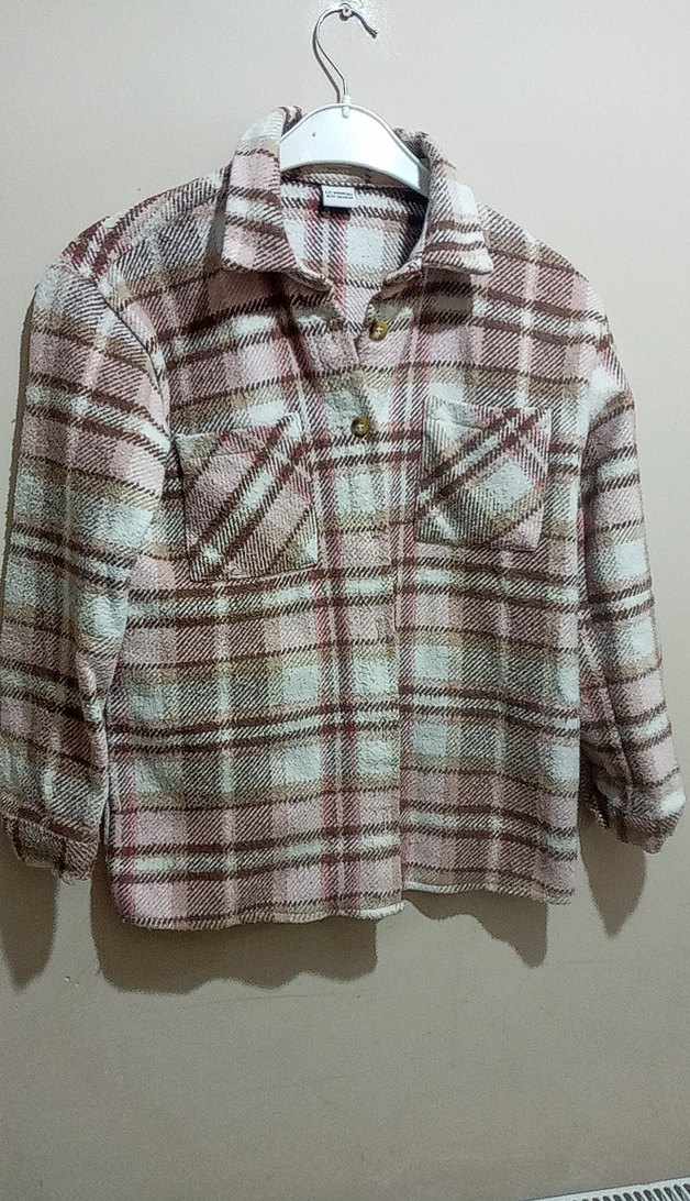 Uzun kollu, düğmeli ve yakalı, bej ekose desenli, rahat kesim kadın gömleği. Ön cep detaylarıyla günlük kullanıma uygun, yumuşak ve sıcak kumaştan üretilmiştir.