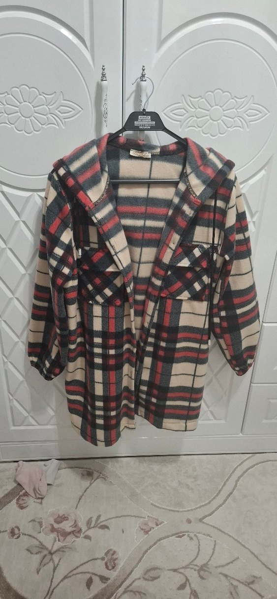 Kadınlar için uzun kollu, düğmeli, oduncu gomlegi tarzinda 85 cm boyunda, göğüs ölçüsü 59 cm hirka. Yumuşacik, bol kesim, 2 göğüs cebi mevcut, ekose desenli, rahat ve şık. kırmızı, gri, krem tonlarında.