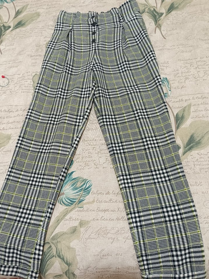 Düğmeli, ekose desenli bu kadın pantolonları normal kesimde ve sentetik kumaştan üretilmiştir. Gri tonlarında, günlük kullanıma uygun sokak tarzı pantolonlar.