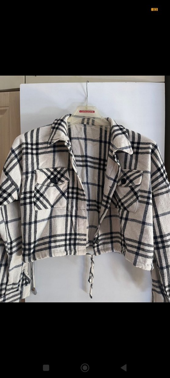 Düğmeli Ekose Desenli Kısa Kadın Gömlek