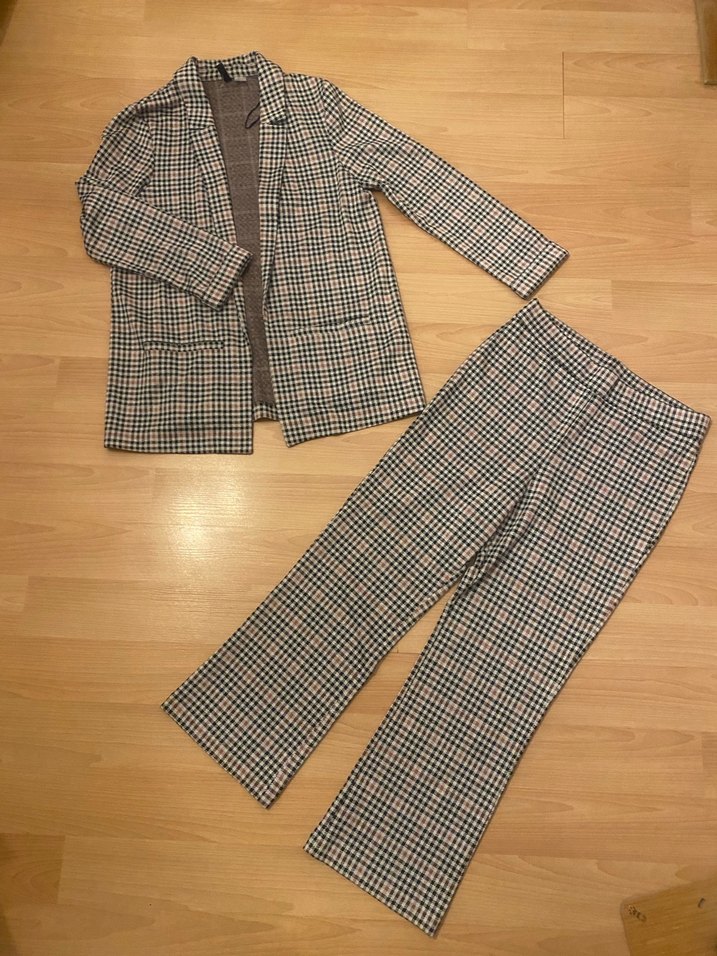 Düğmeli, kahverengi ekose desenli, sentetik kumaştan yapılmış, normal boy midi kesim, regular fit kadın kumaş pantolon. (Üstü s altı M bedendir ihracat fazlası dır sıfırdır
