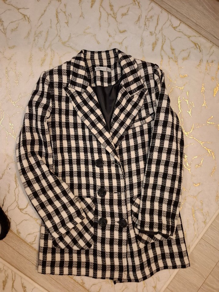 Düğmeli ve notched lapel yakalı, uzun kollu, ekose desenli midi boy kadın blazer. Regular fit ve günlük şıklık için uygundur.