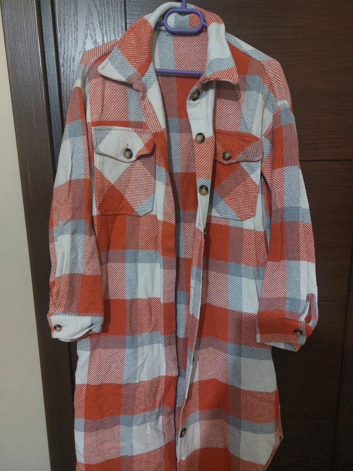 Pamuk malzemeden, düğmeli ve notalı yaka detaylı, hafif çok renkli ekose desenli, bol kesim midi gömlek. Günlük kullanıma uygun rahat stil.