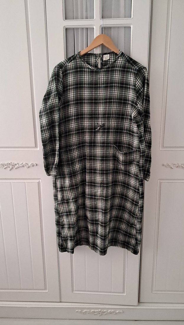 Düğmeli Ekoseli zeytn yeşili gri karşık Uzun Kadın Tunik.