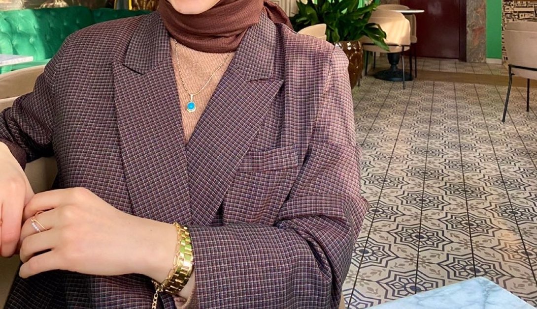 Düğmeli Ekoseli Kadın Kahverengi Blazer Ceket