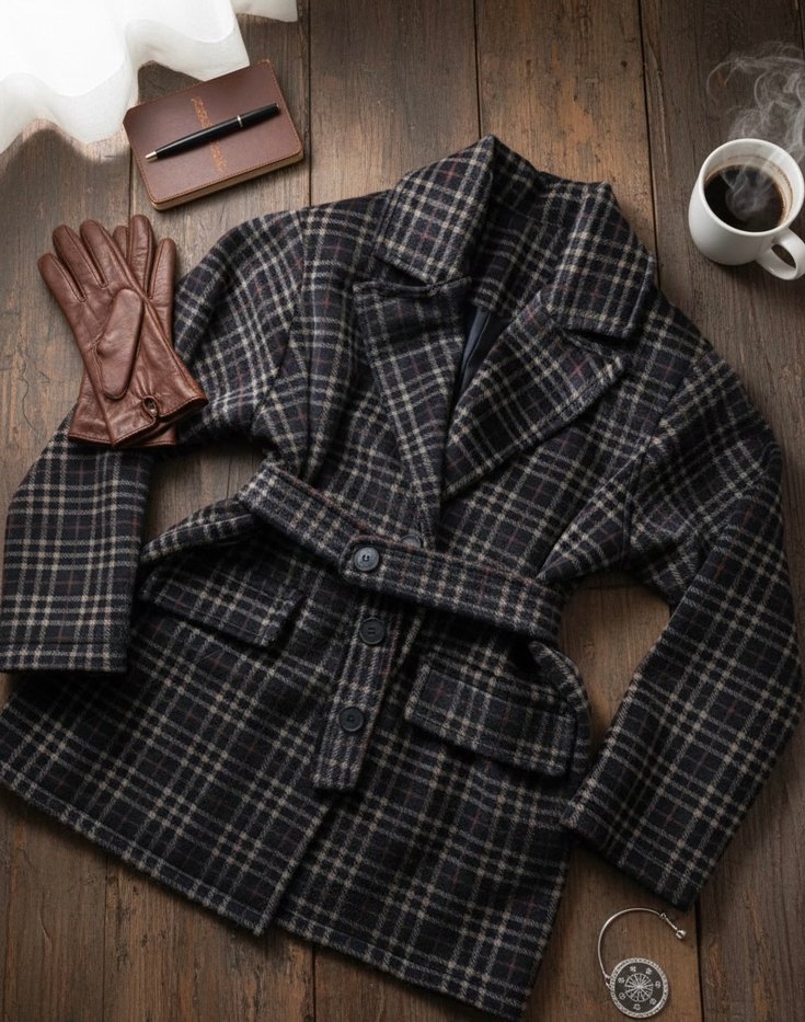 Düğmeli, kahverengi ekoseli yün kaban, normal boy midi uzunlukta, uzun kollu ve regular fit. Notch yaka ile günlük sokak stiline uygun. boyu 75 cm stndart beden içi asatrsızdır özel dikimdir istenen boy ve bedenden ve istenen kumaştan özel dikim yapılmaktadır siparişten birgün sonra dikilip kargolanacaktır