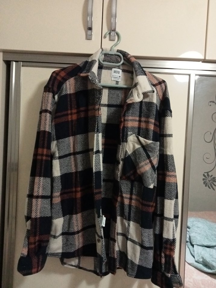 Kahverengi ekoseli yün gömlek, bol kesim, uzun kollu ve kesik yaka detaylıdır. Düğmeli önü ve rahat sokak stili ile günlük kullanıma uygundur. oduncu gömlek