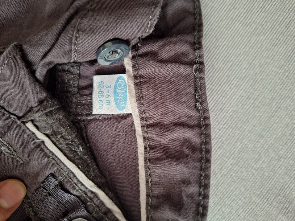 Düğmeli, bol kesim gri denim erkek bebek pantolonu, 6 ay (62-68 cm) bedeninde.