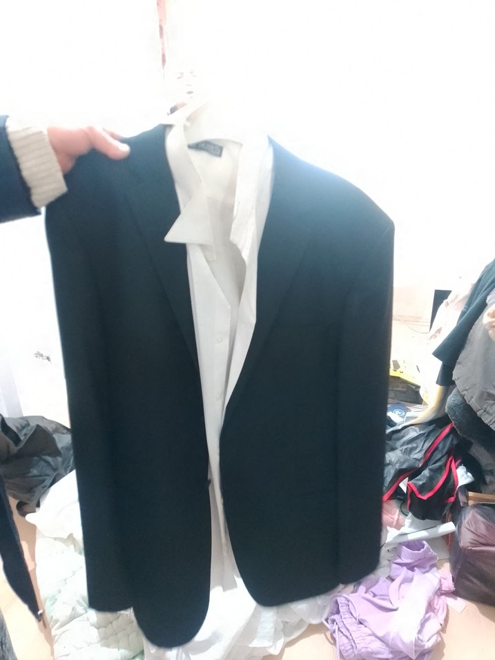 Düğmeli, uzun kollu, notch yakalı erkek ceket. Regular fit ve normal boyda, koyu beyaz renkte, ofis ve sokak tarzına uygun.