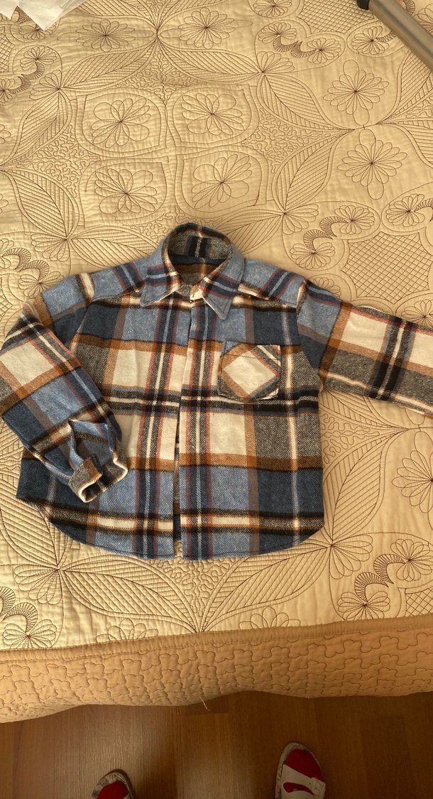 Kursa giderken diktiğim 3-4 yaş gurup. Çocuk gömleği. Düğmeleri yoktur. Çıt açtırılması gerekli. Oduncu gömleği sıfır son fotoğrafta kolunda Kumaş on defosundan dolayı parça eklenip. Yapıldı çok belli değil kumaş desenli olduğu için