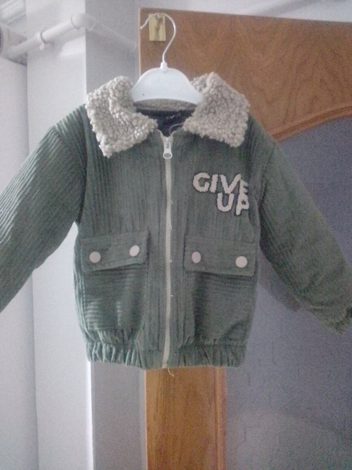 Düğmeli cepleri ve yumuşak kürklü yakası olan, gömlek yakalı, nakış detaylı, gri renkli erkek çocuk ceketidir. 2 yaş yazıyor ama 1 yaşa uygundur.