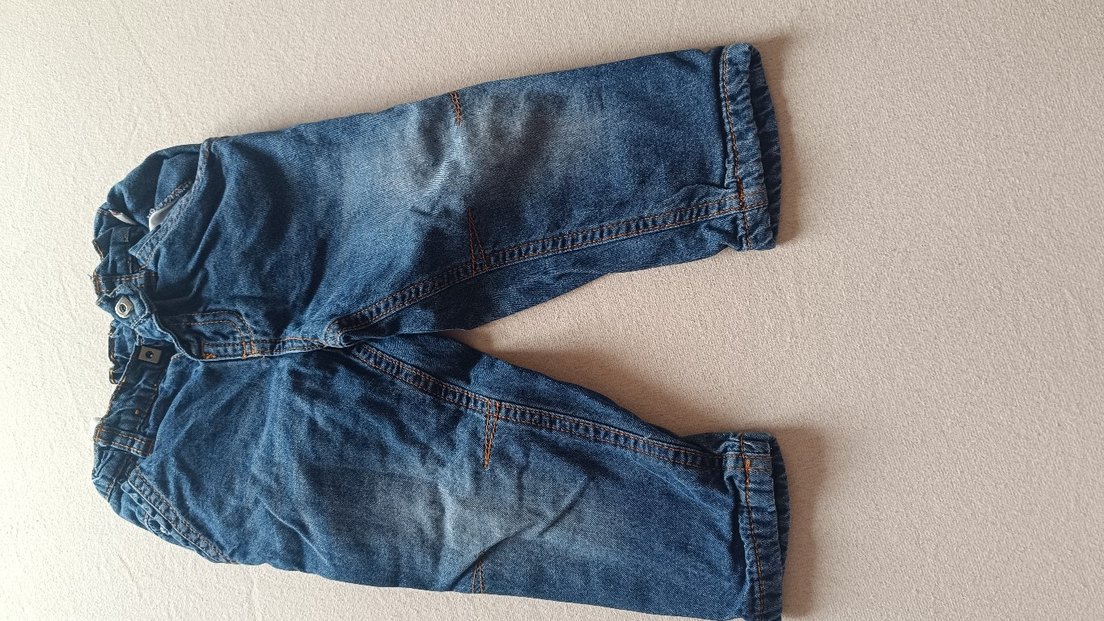 Düğmeli, geniş kesim mavi-gri tonlarda erkek çocuk kot pantolon. Rahat ve sade tasarım.