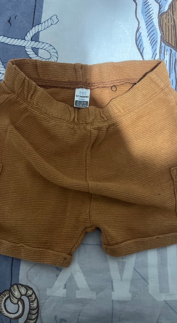 Düğmeli, kahverengi erkek çocuk şortu yumuşak pamuk kumaştan yapılmıştır. Sokak tarzına uygun sade ve düz tasarıma sahiptir.