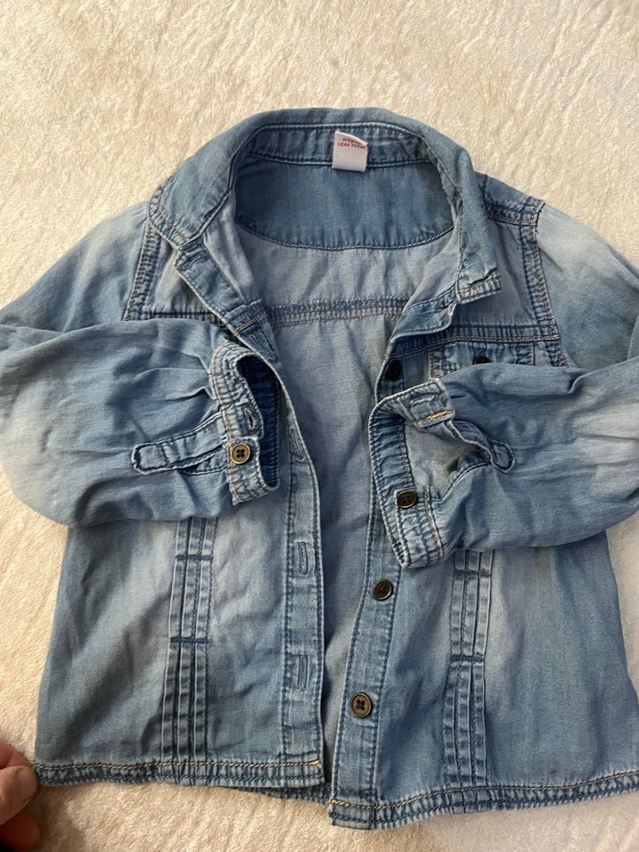 Mavi kot kumaştan yapılmış, düğmeli ve kesimli yakalı erkek çocuk ceketi. Sokak modası tarzında, rahat ve şık bir görünüme sahiptir.