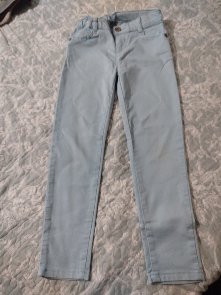 düğmeli ve düz modelde, düzenli kesim erkek çocuk kot pantolonu.