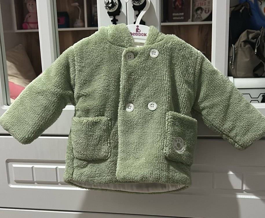 Düğmeli Erkek Çocuk Yeşil Kaban