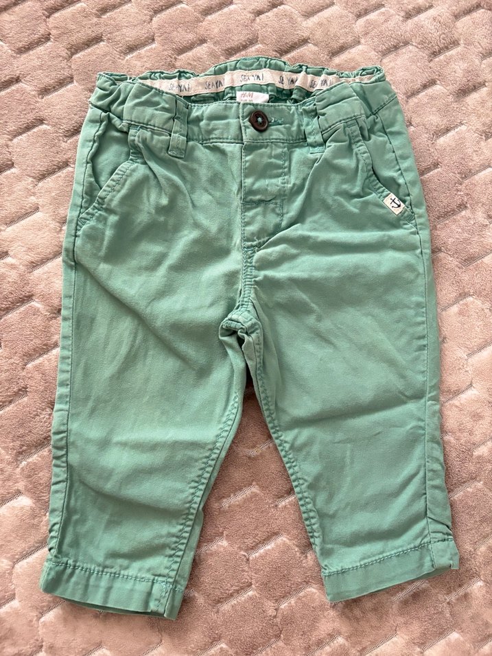 Düğmeli ve regular fit kesime sahip, pastel yeşil renkli pamuklu erkek çocuk pantolonu.