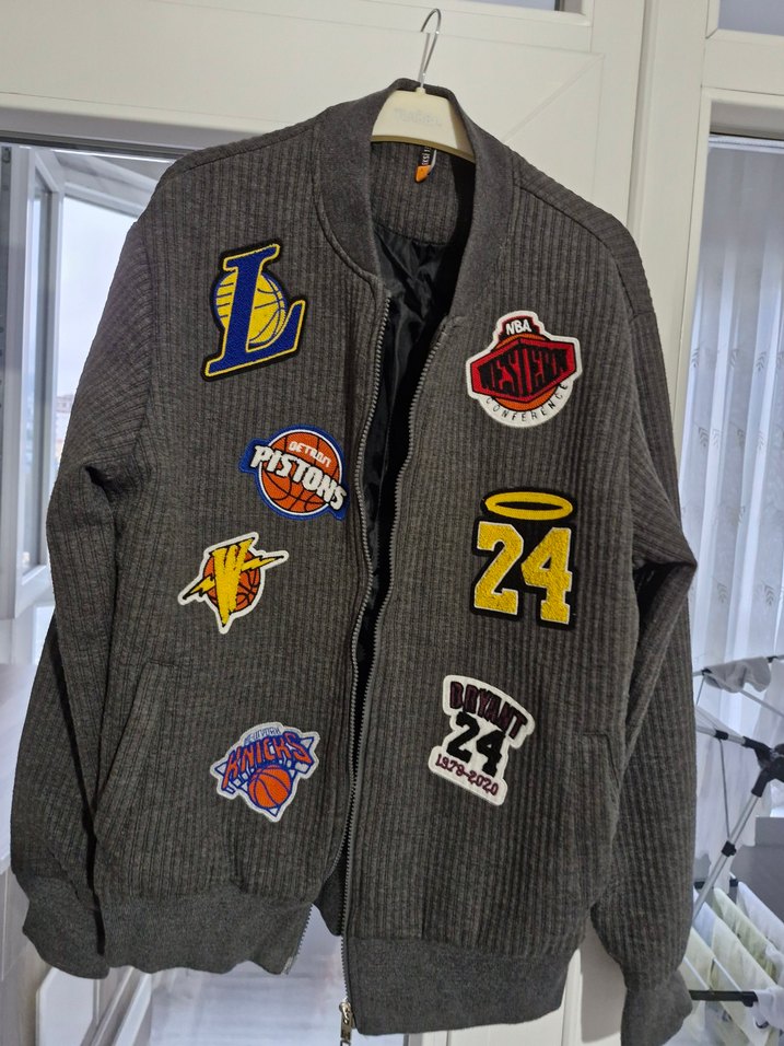 Düğmeli, fit kesim gri erkek ceketi, notched lapel yakalıdır. Yumuşak ve sıcak dokulu kumaşı nakışlı patch detaylarıyla tamamlanmıştır.