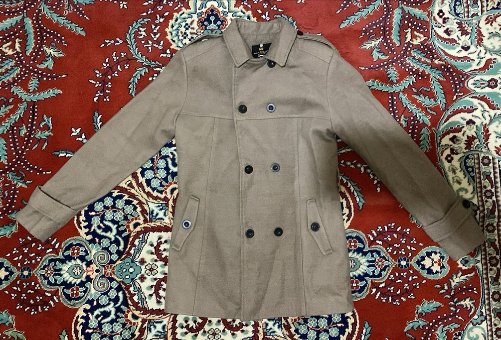 Düğmeli erkek kahverengi kaban, notalı yaka, uzun kollu ve normal kesimdir. Sentetik kumaştan yapılmış, midi boyda günlük sokak stili için uygundur.