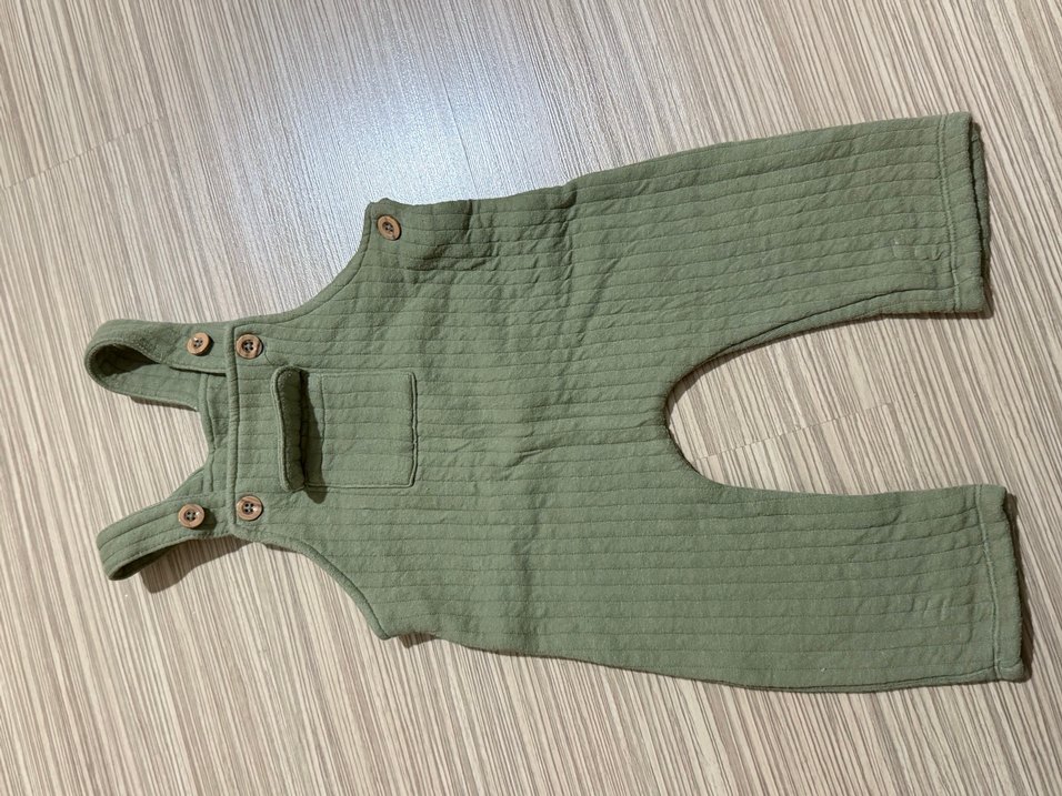 Düğmeli, kolsuz, yeşil renkte yumuşak keten kumaştan erkek tulumu. Rahat kullanım için regular fit kesime sahiptir.