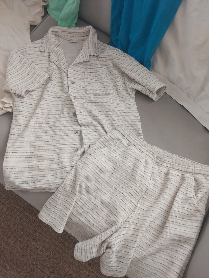 Düğmeli gömlek ve şorttan oluşan, kısa kollu, yakalı erkek pijama takımı. Rahat kesim ve hafif çizgili kumaşla rahat bir kullanım sunar. toplu satis hepsinin fiyati