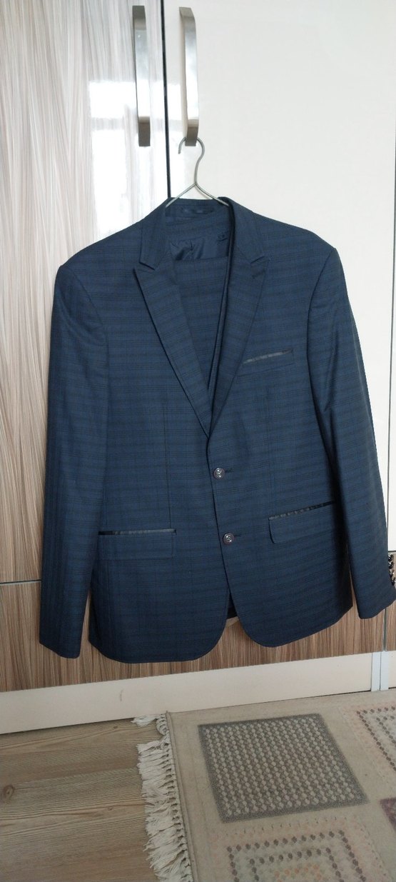 Düğmeli Erkek Klasik Mavi Takım Elbise Ceketi