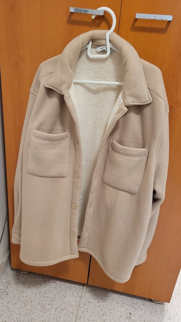 Bej renkte, düğmeli ön ve yakası kesik detaylı erkek polar ceket. Yumuşak ve sıcak kumaştan, bol kesim, uzun kollu ve iki göğüs cepli. Xside marka etiketi ile XL bedende, sade tasarımlı, günlük kullanım için uygun. Satın aldıktan hemen sonra kilo aldığım için neredeyse hiç kullanılmadı. Toplam 2 yada 3 defa giydim.