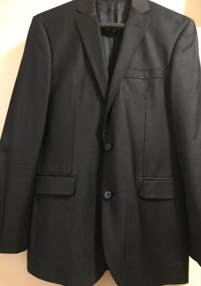 Düğmeli, siyah erkek takım elbisesi, klasik kesim ve uzun kollu. Ofis için modern ve desen içermeyen şık bir tasarım sunar. ️cacharel marka ceket 46 6 drop pantolon 48. 6 drop ölçüler resimde çektim