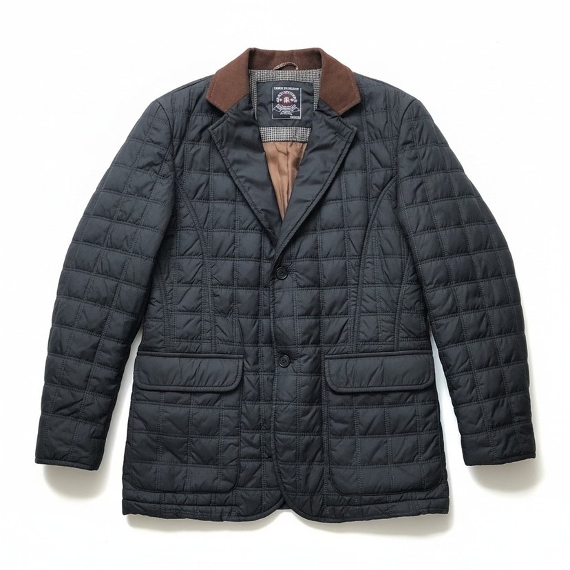 Düğmeli, kahverengi yakalı, kayış kollu, siyah midi uzunlukta erkek ceketi, rahat kesim ve sıcak tutan yumuşak kumaştan yapılmıştır. rodi classic