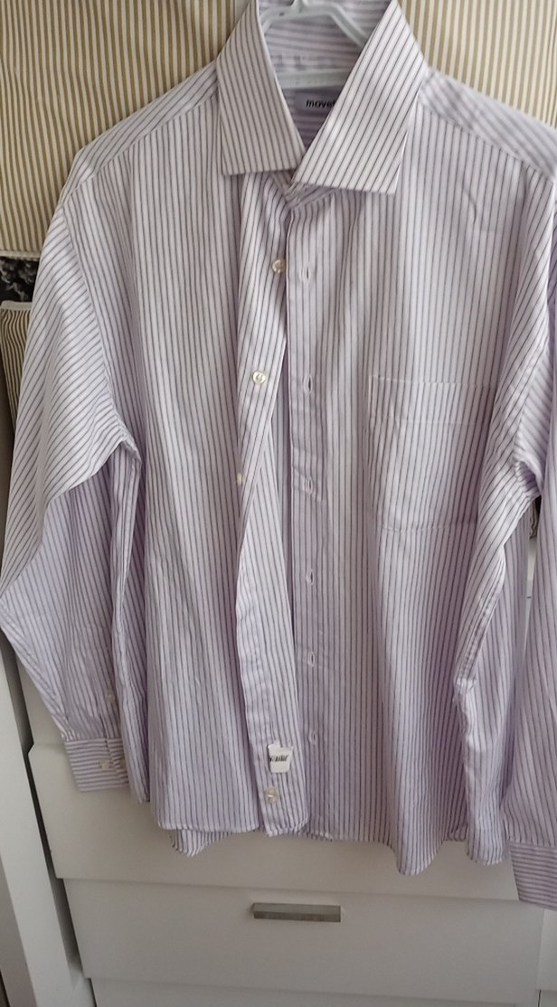 Düğmeli, uzun kollu ve regular fit olan bu erkek gömlek, ofis için uygundur. Sentetik kumaştan, gri ve mor tonlarında çizgili desene sahiptir.