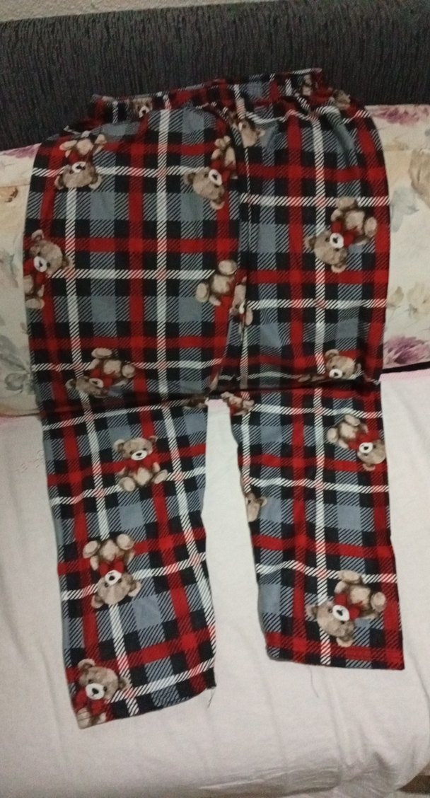 Düğmeli ön kısmı, uzun kollu ve bol kesim erkek pijama. Gri ve kırmızı ekose desenli, ayı baskılı midi boy pantolon ile rahat bir tarz sunar.