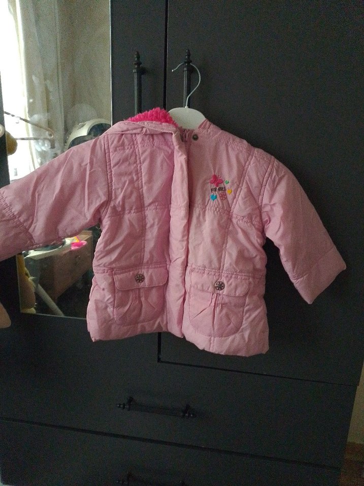 Düğmeli fermuarlı Pembe Kız bebek Mont