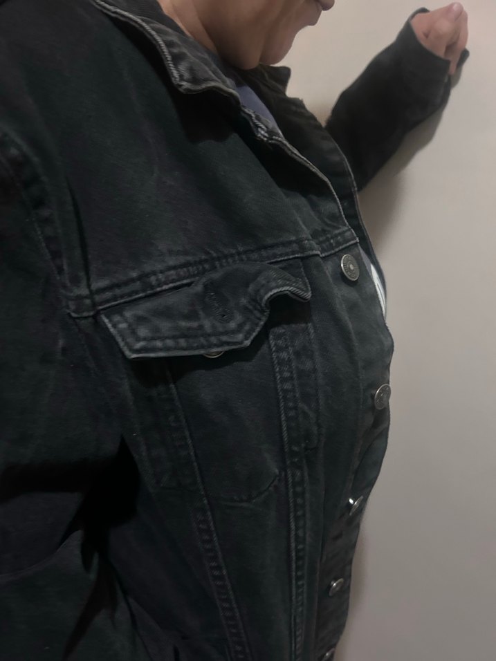 Düğmeli, siyah renkte, kesimli yakalı ve normal midi boyda, dar kesim kadın denim cekettir. Kayışlı kolları ve sokak stiline uygun grunge punk havası vardır. Yeni gibi