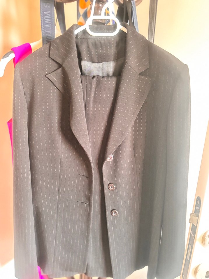 Füme renkte, düğmeli, uzun kollu, ipeksi dokulu kadın ofis takımıdır. Normal boyda, klasik ve desen içermeyen tasarımıyla iş ortamlarına uygundur.
